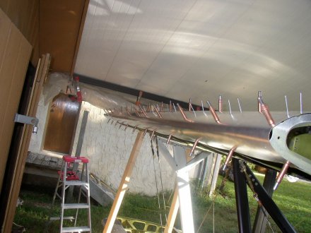 attaching main interplane strut fabricating interplane strut braces rigging flying wires flying wires cable tangs attaching leading edge to lower right wing attaching upper leading edges
